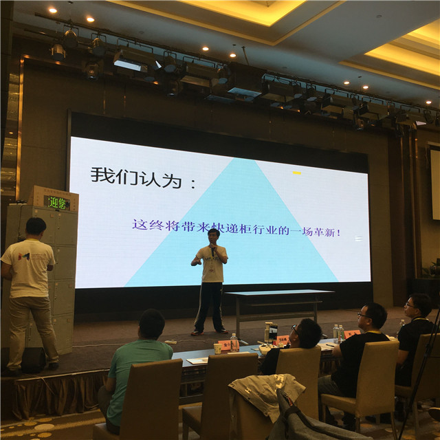 最后代表我院上台路演的是16号蓝岛创行队,他们为现场评委带来极具创意的智能指纹快递柜,实现快递的快速收发。使用者需在初次使用快递柜时录入指纹并与其手机号码匹配,在以后多次使用时仅需按上指纹就可轻松收取快递,真正解决快递最后一公里的难题,让快递更加快速,隐私,安全地送到每位用户手中。