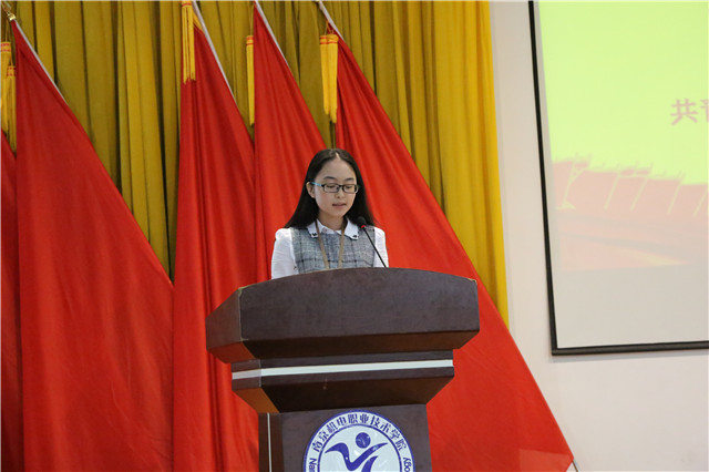 院团委文体部部长王庆同学作为学生讲师代表发言。她表示作为一名优秀的学生干部不仅需要一腔热血还需要相对应的工作能力。这些能力不是刚开始就拥有的,而是需要通过学习和逐步的锻炼提高。学生干部平时需要以身作则,工作时需要深入同学之中。从大处着眼、小处着手,有了解才能把学生干部工作做的更好。在学习工作中更要严格要求自己,做同学的榜样与老师的助手。