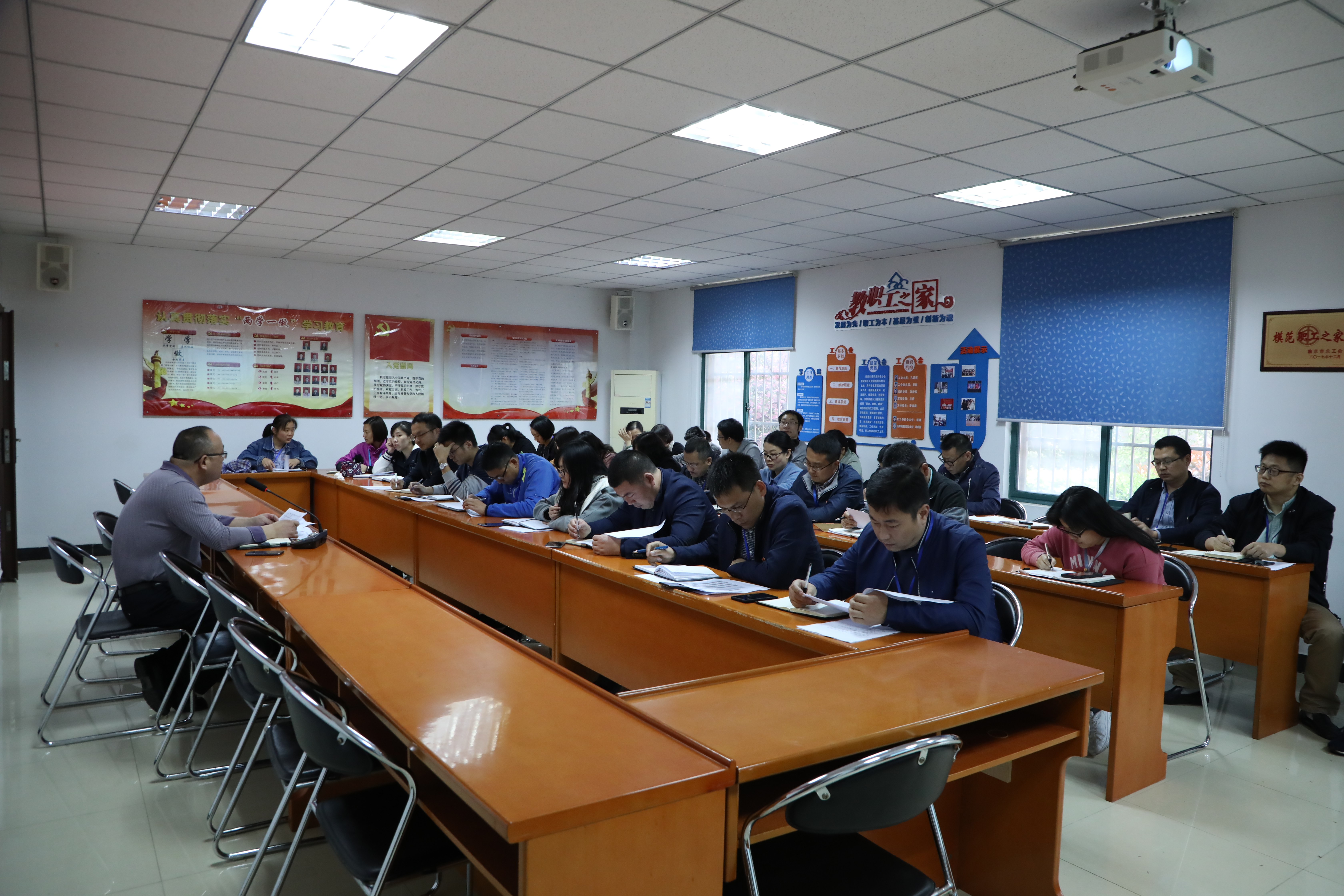 会上,学工处处长助理殷凯总结学院2019年提前招生的整体情况,用图文数据展示了各系部、专业以及片区的提前招生的报名人数,重点解读了对口单招的志愿填报以及时间安排。随后,学工处招办主任朱专恩对中职阶段的招生策略进行了分享,分析了进班进校过程中常遇到的问题。并提出了应对招生宣传的五个具体策略。