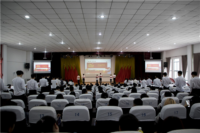 青春似火,让奋斗的步伐永不停息,由团员代表集体朗诵的《五四青春永不熄》,同学们慷慨激昂的朗诵带领在场的观众回顾了百年前那段激情燃烧的岁月,展现了机电的青年学子在新时代矢志艰苦奋斗、托举起伟大“中国梦”的勇气和决心。