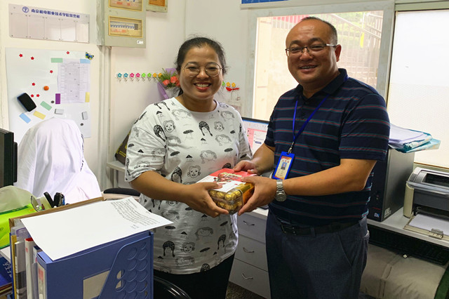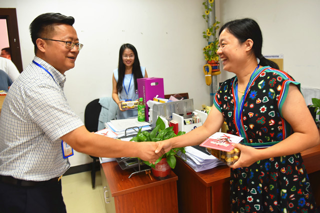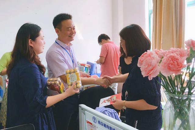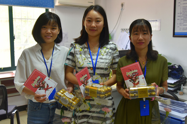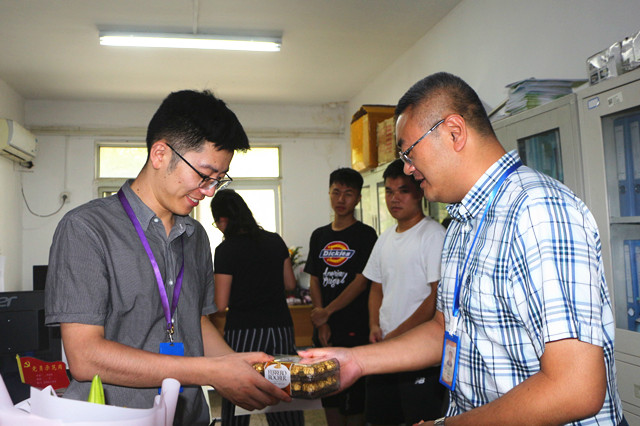 随后,学院领导分赴各系部及职能部门,为辛勤的园丁们送去暖暖的问候和学院的心意。一张小小的贺卡,一盒沉甸甸的巧克力,这是机电教师节特有的礼物。每一年的教师节,院领导都会亲自把这份心意送到每一位教职工手中。礼物虽轻,情深义重,从新进的年轻教师到工作多年的老教师,这份来自学院的心意让他们收获了满满的感动与惊喜。