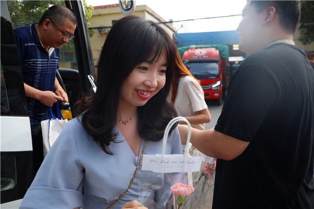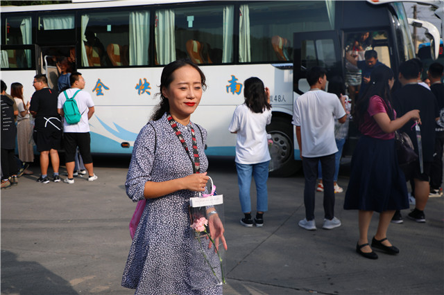 旭日东升,秋风送爽。9月10日早晨8点,学院团委的学生们早早守候在校门口和停车场,准备好包装精美的康乃馨,迎接老师们的到来,只为让他们踏进校园的第一时间收到祝福。“老师,您辛苦了!”“祝老师节日快乐!”,听着这一声声真挚的问候,接过一枝枝鲜艳的康乃馨,老师们的脸上写满了幸福与感动。