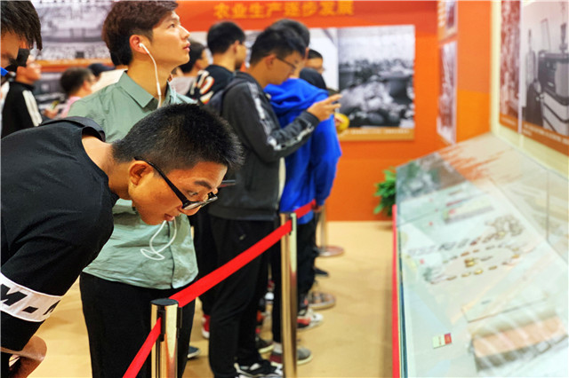 此外,本次展览还设置了13个设区市专题展区,概括反映70年来全省各设区市经济社会发展历程和成就;展览尾厅部分则突出互动性,借助多屏立体展示技术和互动体验方式,让师生们直观形象地观摩学习新中国成立70年来江苏大地上涌现的先进典型和英雄模范人物,深情表达对新中国生日的祝福。一张张照片、一件件老物件、模型,带领各支部师生们走入了一条穿越70年的时光隧道。在这,不仅可以了解江苏在新中国建设、改革和发展的伟大历程和巨大成就,还能欣赏到自主创新、前沿领先的江苏制造、江苏建造、江苏智造、江苏创造的风采。
