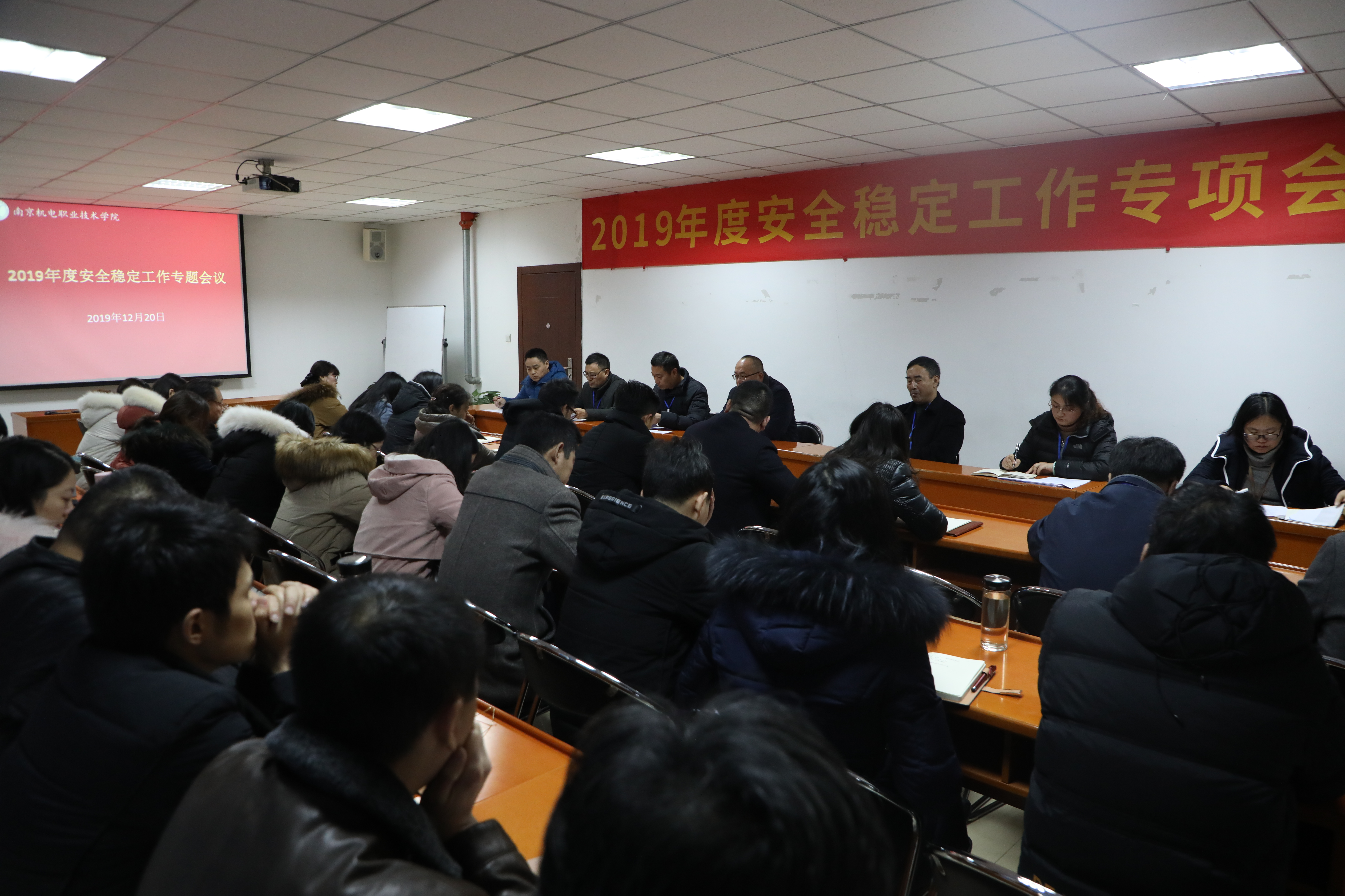 12月20日下午,我院在弘德楼107会议室召开2019年度安全稳定工作专题会议暨全省落实校园和校车安全专项整治行动工作部署大会,党委委员、副院长郭朝辉,党委委员、副院长赵学洪出席会议。学院安全工作小组成员,继续教育学院、各系及职能处室主要负责人,各部门安全员,实训中心负责人参加会议。