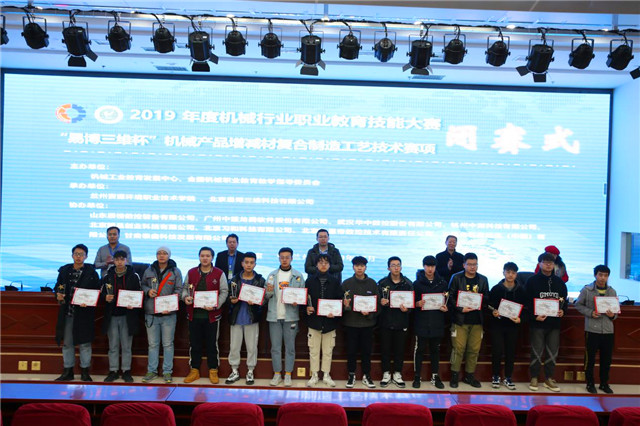 2019年12月17日至20日,2019年度全国机械行业职业教育技能大赛“易博三维杯”机械产品增减材复合制造工艺技术赛项竞赛在兰州资源环境职业技术学院举办,本次比赛由机械工业教育发展中心和全国机械职业教育教学指导委员会主办,北京易博三维科技有限公司和兰州资源环境职业技术学院承办,来自全国16个省、市、自治区的21所学校的54名选手参加了比赛。