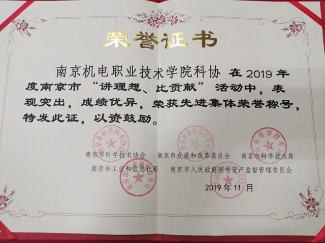 学院科协自2016年成立以来,以习近平新时代中国特色社会主义思想为指引,深入贯彻《科普法》和《全民科学素质行动纲要》文件精神,秉持“聚力创新谋发展,服务师生促成长,助力创新名城建设”的工作思路,团结带领广大科技工作者,围绕“四服务一加强”,积极打造“创客校园体验日”、“科普公益讲座”、“新生科普教育第一课”等科协品牌活动,培育优秀科普作品、优质科普课程,开展创新创业大赛、“讲理想,比贡献”活动等科技创新活动,营造优良创新创业环境,组建科技志愿服务支队,深入企业、街道社区、中小学、开展技术服务和科普益民活动,提供符合基层需要、深受群众欢迎的科学技术服务,推动科技发展成果共享,促进科技创新与科学普及两翼齐飞。三年来,学院科协2017-2019年连续三年被评为南京市企事业(园区)科协工作先进集体、南京全国科普日活动优秀组织单位、南京市科协青年会员创新创业大赛优秀组织奖,2018-2019年连续两年被评为南京市“讲理想、比贡献”活动先进集体。同时,获批“江宁区新时代文明实践科技与科普服务示范点”。