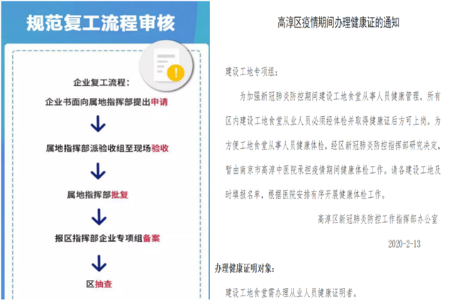 为争取施工时间,春节后项目多次主动申请复工,提前积极组织劳务,在接到复工申请相关通知后,项目第一时间提交复工申请,并于2月21日顺利通过区城建局、卫健委、应急局、城管局联合复工检查。目前项目现场管理人员已全部到岗,施工人员已进场100余人,后续将根据施工节点需求,积极组织人员返岗进场。2月25日,高淳区委书记吴勇强一行到项目现场调研,充分肯定了项目现场的防疫防控和复工复产工作。