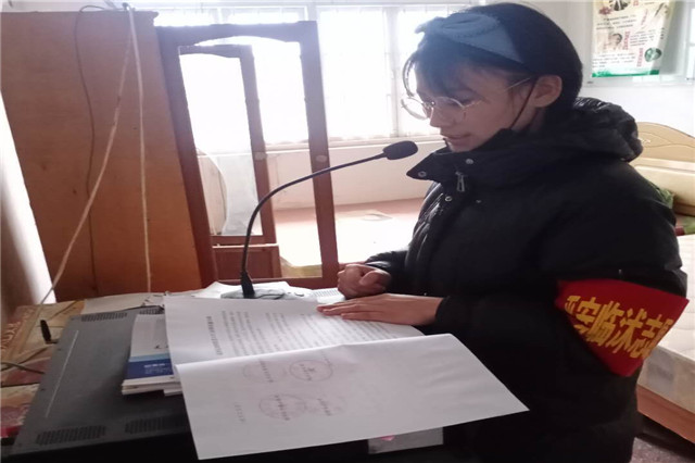 李荣康同学在徐州市丰县担任村口卡口志愿服务。他说,大家进出村口都要经过这条路,每天早上到7点到下午6点都是我的值班时间,中午只能短暂的休息一会吃个饭,天气又非常的寒冷,但是我想到我身上的责任,想到还在一线奋斗的医护人员,我就觉得不那么冷了。面对疫情,做我能做的工作就是我的职责,哪里有需要就出现在哪里。看到很多村民主动跟我们报告要求隔离时,我都觉得非常感动,这就是我们中国人的的执行力,我坚信,我们一定能战胜这次疫情。—机电一体化技术192班李荣康