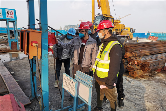 集团领导及专家就现场安全防护、消防装置、临时用电及机械设备等进行安全专项检查,并参观了学生宿舍楼施工情况。