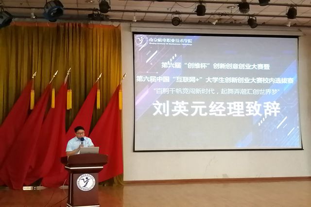 本届大赛冠名单位南京创维家用电器有限公司的人力资源部经理刘英元在致辞中介绍,南京创维家用电器有限公司成立十年来一直秉承着开放、创新、务实奋斗的企业精神,先后被评为国家级高新技术企业、工信部两化融合管理体系的贯标企业、中国十大洗衣机出口企业等荣誉称号。自2017年起南京创维家电公司与南京机电学院建立校企合作关系,实施“订单式”人才培养,共同探索校企共育人才和产学研合作的新路子、新方法,竭尽全力实现学生、学校、企业三方共赢。他表示,机电学院三创大赛的大赛宗旨与创维家电公司求新、求变的管理理念一致,公司将为大赛提供项目选题、经费支持、技术指导,为机电师生科技创新、项目立项、项目孵化提供企业实践平台。