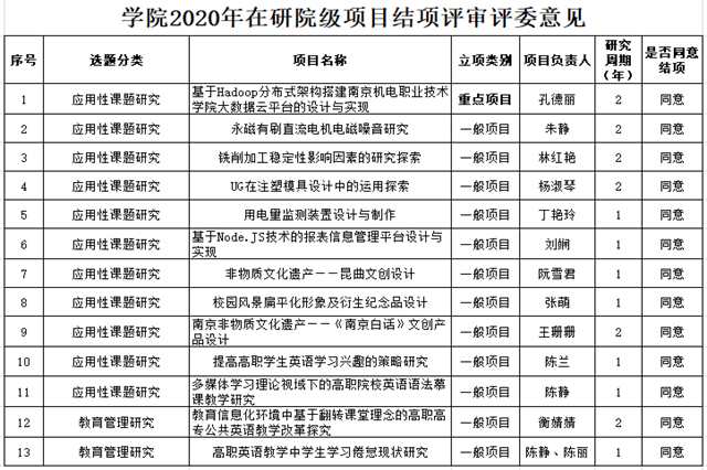 根据《关于2020年上半年院级在研科研项目结项的通知》、《米兰官方网页版科研工作管理办法》机电学院[2012]19号、《米兰官方网页版科研项目管理办法》机电学院[2012]20号文件精神,经科研及校企合作处审查,院学术委员会鉴定审核,批准我院2020年上半年学院在研科研项目27项通过结项鉴定。现将结项鉴定结果予以公示。