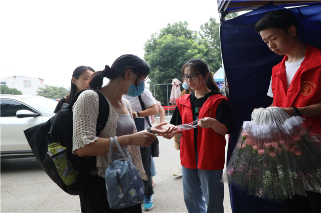 9月10日早晨8点,学院团委的学生们早早守候在校门口体温监测点,准备好包装精美的康乃馨,迎接老师们的到来,只为让他们踏进校园的第一时间收到祝福。“老师,您辛苦了!”“祝老师节日快乐!”,听着这一声声真挚的问候,接过一枝枝鲜艳的康乃馨,老师们的脸上写满了幸福与感动。