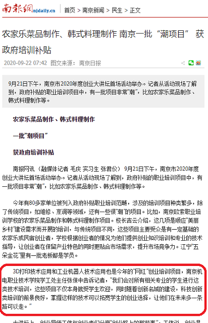 2020年921日下午,我院受邀参加了在南京市人力资源和社会保障局指导下,由南京市职业技术培训指导中心主办、南京市华普赢之道职业培训学校承办的南京市2020年度创业大讲坛首场活动。南京日报、现代快报、南报网等多家媒体对我院学生参与创业、技能培训项目的相关情况进行了采访和报道。