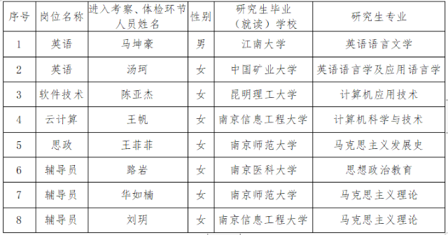 根据《米兰官方网页版2020年度教师及辅导员补充招聘公告》,经过资格审查和考核等环节,并经学院公开招聘领导小组和党委会研究,现将各招聘岗位进入考察、体检环节的人员名单予以公告。