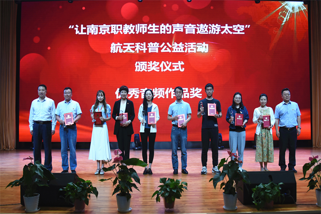活动现场全场嘉宾观看了中国航天大会宣传视频。视频回顾了中国航天事业的发展历程,追忆了中国历代航天人为中国航天事业起步、发展、腾飞而做出的不懈努力。南京市职业技术教育学会领导宣读了“让南京职教师生的声音遨游太空”系列科普公益活动的获奖名单。南京市莫愁中等专业学校等3所学校的师生获最具内涵奖,南京财经高等职业技术学校等3所学校的师生获最具创意奖,南京高等职业技术学校等3所学校的师生获最具文采奖。米兰官方网页版、南京高等职业技术学校、南京新港中等专业学校、南京六合中等专业学校等4所学校获最佳组织奖,南京玄武中等专业学校获最佳支持奖。南京市职业技术教育学会在本次活动中获“合作贡献奖”。