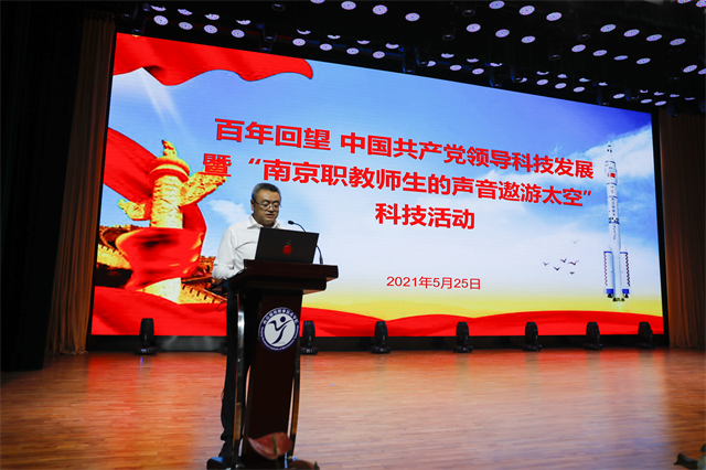 2021年5月25日,百年回望:中国共产党领导科技发展暨“南京职教师生的声音遨游太空”科技活动在米兰官方网页版报告厅举行。出席本次活动的嘉宾有中国工程院院士贲德,中国人民解放军航天员大队第一任大队长申行运,中国航天科技国际交流中心副主任周岫彬,南京市教育局副局长潘东标,南京市职业技术教育学会会长、市职社处处长黄子亮,南京市职业教育研究室主任章宏,南京新工集团总经济师洪薇,南京各职业学校的书记及校长们,南京航空航天大学航天学院领导,南京市第二十九中幕府山初级中学领导,南京高等职业教育创新创业园领导,学校党委书记、院长周庆礼,党委副书记、纪委书记、副院长陈赵,副院长刁爱军,以及企业领导。活动采用线上线下相结合的方式进行,南京职教师生共同感受了本次活动的盛况。