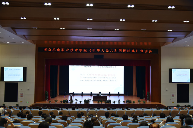 为进一步贯彻落实习近平总书记的重要讲话精神,发挥民法典在中国特色社会主义法律体系中的重要地位,在我校形成人人学习民法典、人人宣传民法典、人人遵守民法典的浓厚氛围。6月10日下午,学校举行《中华人民共和国民法典》宣讲报告会,特邀江苏镜湖律师事务所曾山岸律师为全校师生做了宣讲报告。