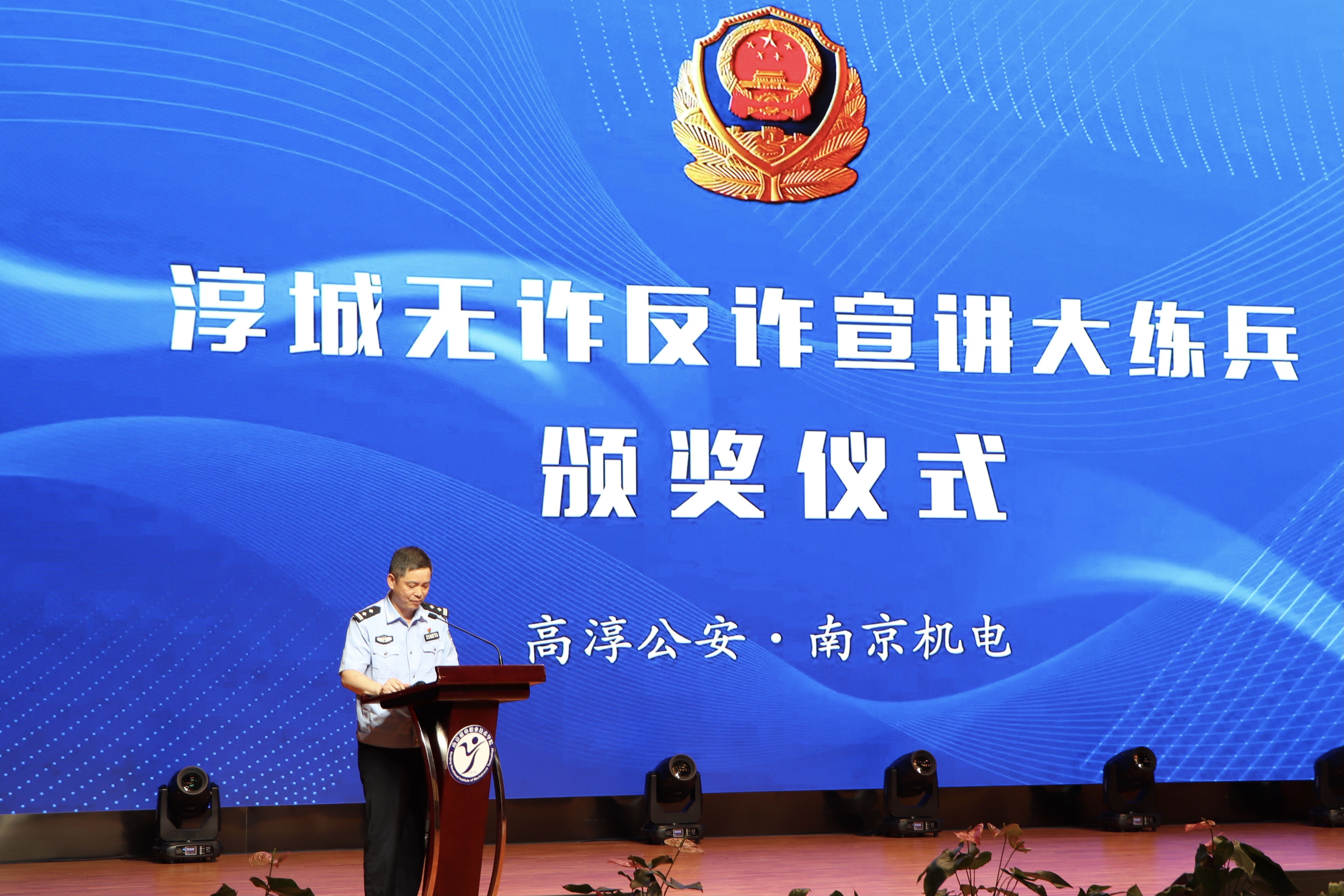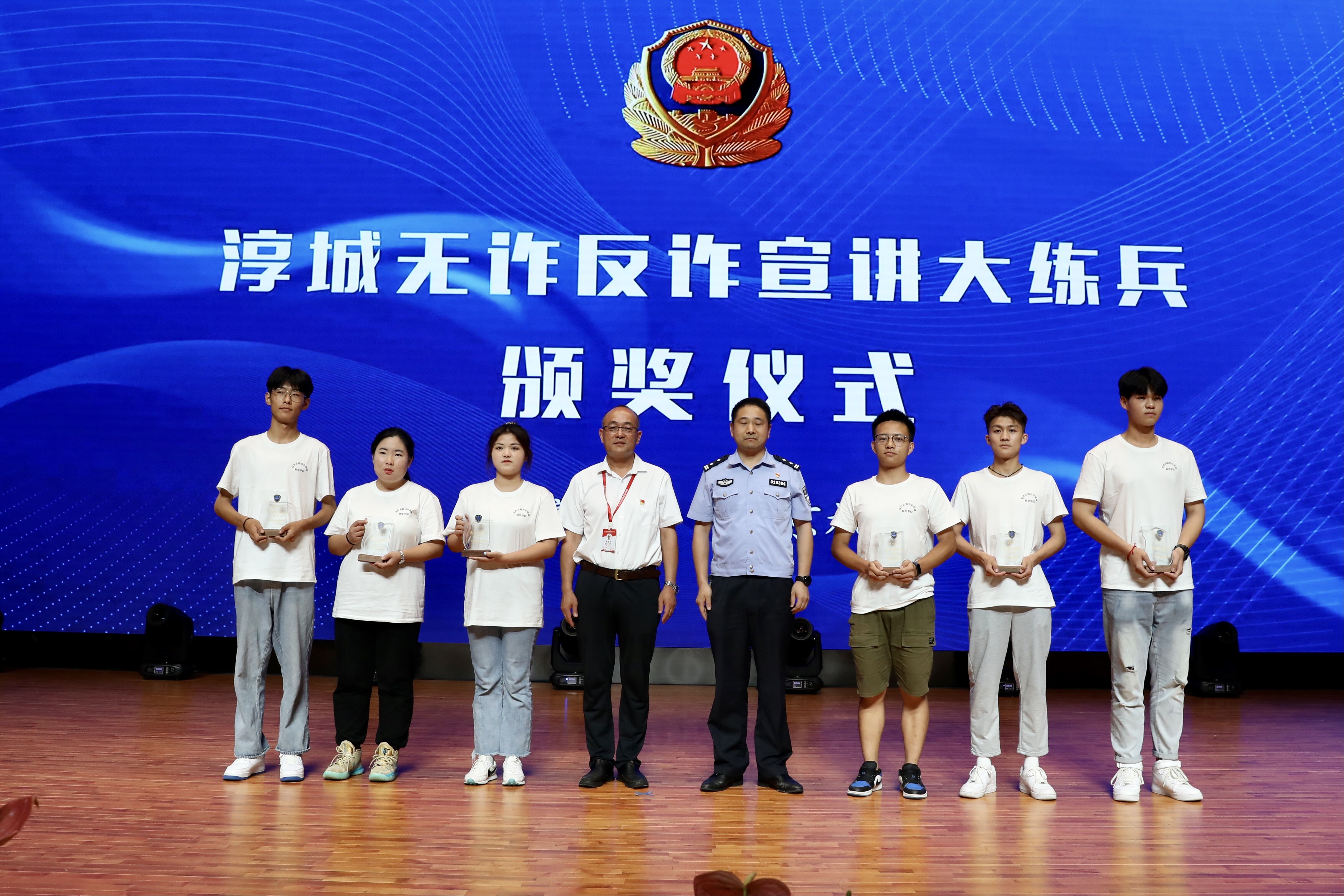 纪圣智为“淳城无诈讲师团”和学校“反诈志愿小分队”授牌,并为“最佳讲师”颁奖。