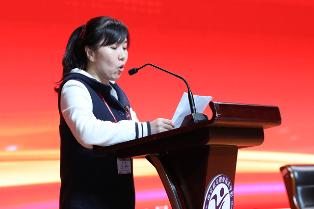 优秀教师代表卢彬发言。卢老师与大家分享了从教14年以来的感动与收获,引经据典向我们诠释了当代教师的责任与担当。