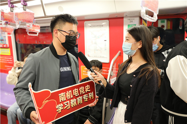 9月28日,由南京报业传媒集团携手在宁12所高校打造的“党史学习教育红色专列”正式起航。自正式运行以来,这趟满载着南机电红色故事的列车便受到关注,国庆期间,不少南机电师生专门上车打卡。地铁旅程虽短,但一个个生动的红色故事让师生们快速了解南机电鲜活的党史、校史。