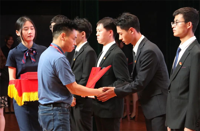 在奋发激昂的团歌声中,五四表彰大会圆满结束。百年征程接续奋斗,初心不改笃行愈坚。我们要坚持以习近平新时代中国特色社会主义思想为指导,团结引领广大团员青年向先进模范学习,牢记党的教诲,立志民族复兴,把青春奋斗融入党和人民事业,在实学实干中长志气、强骨气、厚底气,在青春的赛道上奋力跑出最好成绩,为全面建设社会主义现代化国家凝聚起磅礴青春力量!以实际行动迎接党的二十大胜利召开!