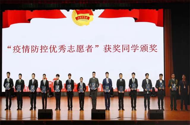 自疫情发生以来,全校广大志愿者冲锋在前、不辞劳苦、无畏风雨,用实际行动践行了初心和使命,用真诚奉献诠释了青年的责任与担当,构筑起战疫的坚固防线,用实际行动弘扬了奉献、有爱、互助、进步的志愿精神,为抗击疫情作出了积极贡献。“疫情防控优秀志愿者”代表徐政豪同学给在场的同学们分享了“战疫青年先锋队”的志愿服务经历。