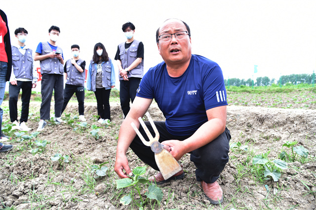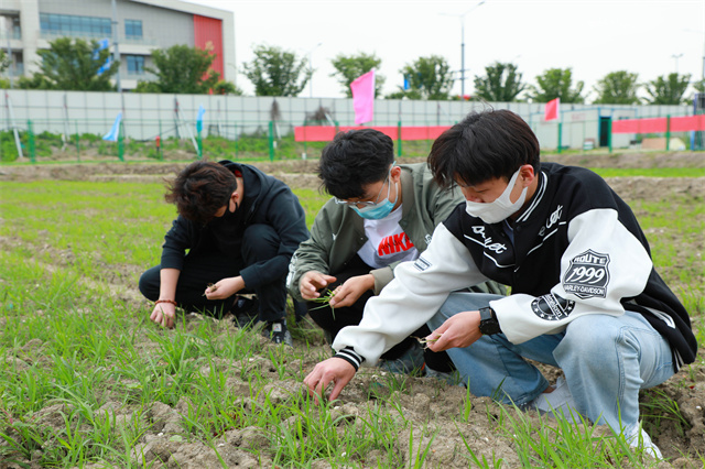 劳动教育活动开始后,学校劳动实践基地技术指导老师荀财华为现场师生们示范了常用农具的操作,并向师生讲授了常见的虫害防护知识,师生们认真学习,随后进入农作区开展劳动实践。师生们的身影在田间穿梭,他们面朝黄土,背向骄阳,弯下的腰肢是青春中有力的曲线,洒下的汗水是岁月里最美的风景。有些同学是第一次下田干活,他们手法生涩,但却很认真地在学习。来自人文社科系数字媒体技术201班的杨嘉骁同学表示,“这块地既然给我们,我们就要干好。”他与同班同学都在互相较劲,比谁干得更快更好。来自人文社科系数字媒体技术201班的李浠林同学表达自己的想法:“在干农活过程中虽然有很多不会的事情,但和同学们一起做农活是很快乐的,也体会到劳动带来的满足。”她认为,这个活动让他们体会到农民伯伯丰收的喜悦,感受到粮食的来之不易。