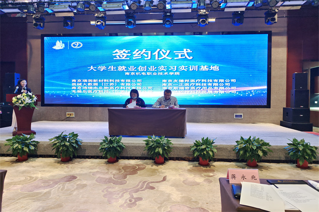 签约仪式上,学校党委书记、院长周庆礼与高淳医疗器械行业协会理事长江文养共同签署了校会战略合作协议。校会双方本着优势互补、共同发展的宗旨,建立规范的工作机制,在人才培养、员工培训、课程开发、技术服务、学术交流等领域加强合作,促进高淳区医疗器械行业产业高质量发展。