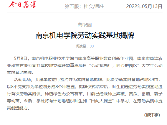 5月14日,米兰官方网页版2022年职业教育活动周收官。连日来,学校在做好常态化疫情防控措施的前提下,通过创新比赛、劳动教育课、专业人才培养论坛等系列活动,展示米兰官方网页版职业教育成果。高淳区电视台、融媒体中心对我校系列活动进行了相关报道。