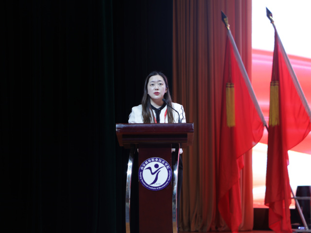 姜振宇为本次学生代表大会致开幕词。她对于一年来学生会的工作成效给予充分肯定,各级学生会组织紧紧围绕学校中心工作,在新冠肺炎疫情防控期间,维护校园安全稳定和遵守疫情防控纪律发挥榜样引领作用;全体学生干部引领同学们树立正确的“三观”,成为践行社会主义核心价值观引领者;开展篮球赛、拔河比赛、校园十佳歌手等文体活动,进一步丰富校园文化生活;带领全体同学积极参加职业生涯规划大赛,激发同学们生涯规划意识,为提升高质量就业打下坚实基础;积极参加团委组织的各类志愿服务活动和社会实践,为学校的高质量发展凝聚了力量,为实现“有爱有趣有情怀”的办学愿景作出了积极贡献。同时,她向全校各级学生会组织、广大学生干部提出了三点希望和要求:一是要提高政治站位,将青年学生紧紧团结凝聚在党的周围;二是要坚持服务同学,切实发挥学生会组织的桥梁与纽带作用;三是要深化组织改革,落实从严治会,培育清新阳光的组织文化。