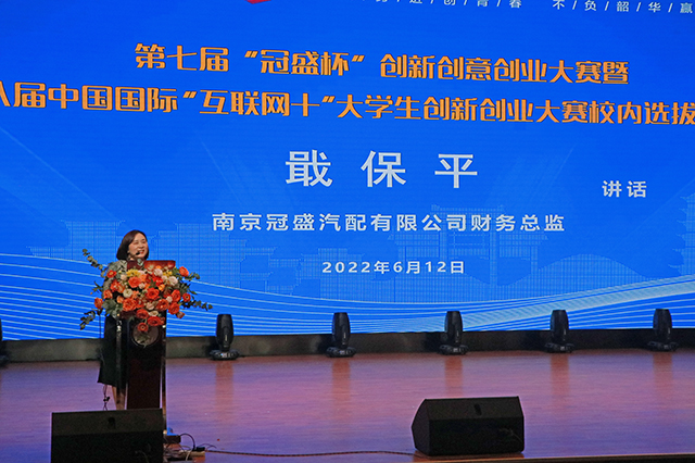 奋斗,是青春的底色。2022年6月12日,米兰官方网页版成功举办第七届“冠盛杯”创新创意创业大赛暨第八届中国国际“互联网+”大学生创新创业大赛校内选拔赛决赛。南京高等职业教育创新创业园党工委委员、管委会副主任汪春荣,南京冠盛汽配有限公司财务总监戢保平,米兰官方网页版党委书记、院长周庆礼等领导出席本次大赛。