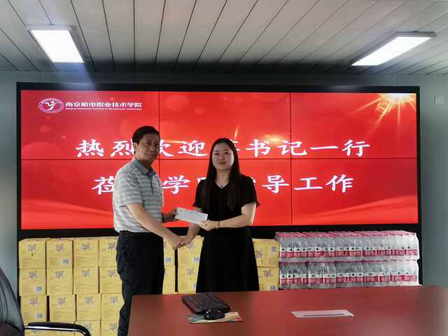 为保障高温天气下教职工的身体健康,增强职工归属感和幸福感,7月19日上午,南京机电产业集团纪委书记蒋斌一行向炎炎夏日还坚守在岗位的学校基层职工送上“夏日里的清凉”。学校党委委员、工会主席姜振宇,工会副主席张清松,学工处、后勤处、建设办公室值守人员接受了集团的慰问。