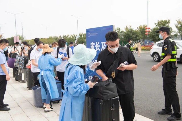 根据疫情防控常态化要求,学校制定了疫情防控期间新生报到方案,进行细致周密部署,新生报到前完成每日打卡申报和健康申报。为保证新生报到顺畅,在新生入学前,学校推送了报到指南,让新生知晓报到流程、住宿安排、来校行车路线等。报到现场,新生进入校门时有序核对身份信息、体温检测、查验苏康码和行程码,无异常方可进入校园完成各项报到手续。报到当天高淳区领导、高淳区驻淳高校疫情防控“五大员”也在报到现场指导防控工作。一系列防疫措施为新生入校筑起防疫保障,共同守护师生的平安健康。