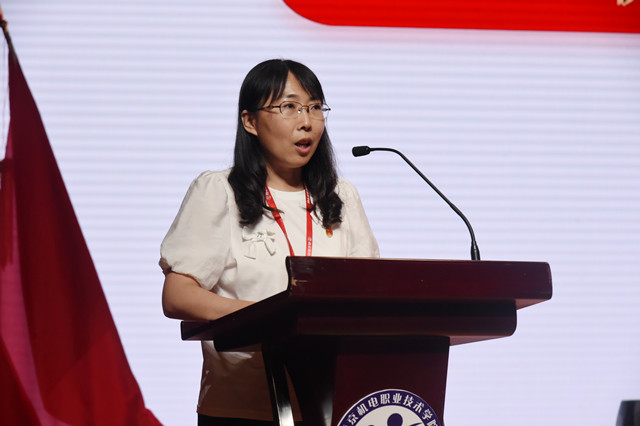 学生代表张译文献词。张译文同学代表全校学生,满含深情的向全体老师表达了自己的感激及祝福之情,展现了机电学子积极进取、拼搏向上的精神风貌。
