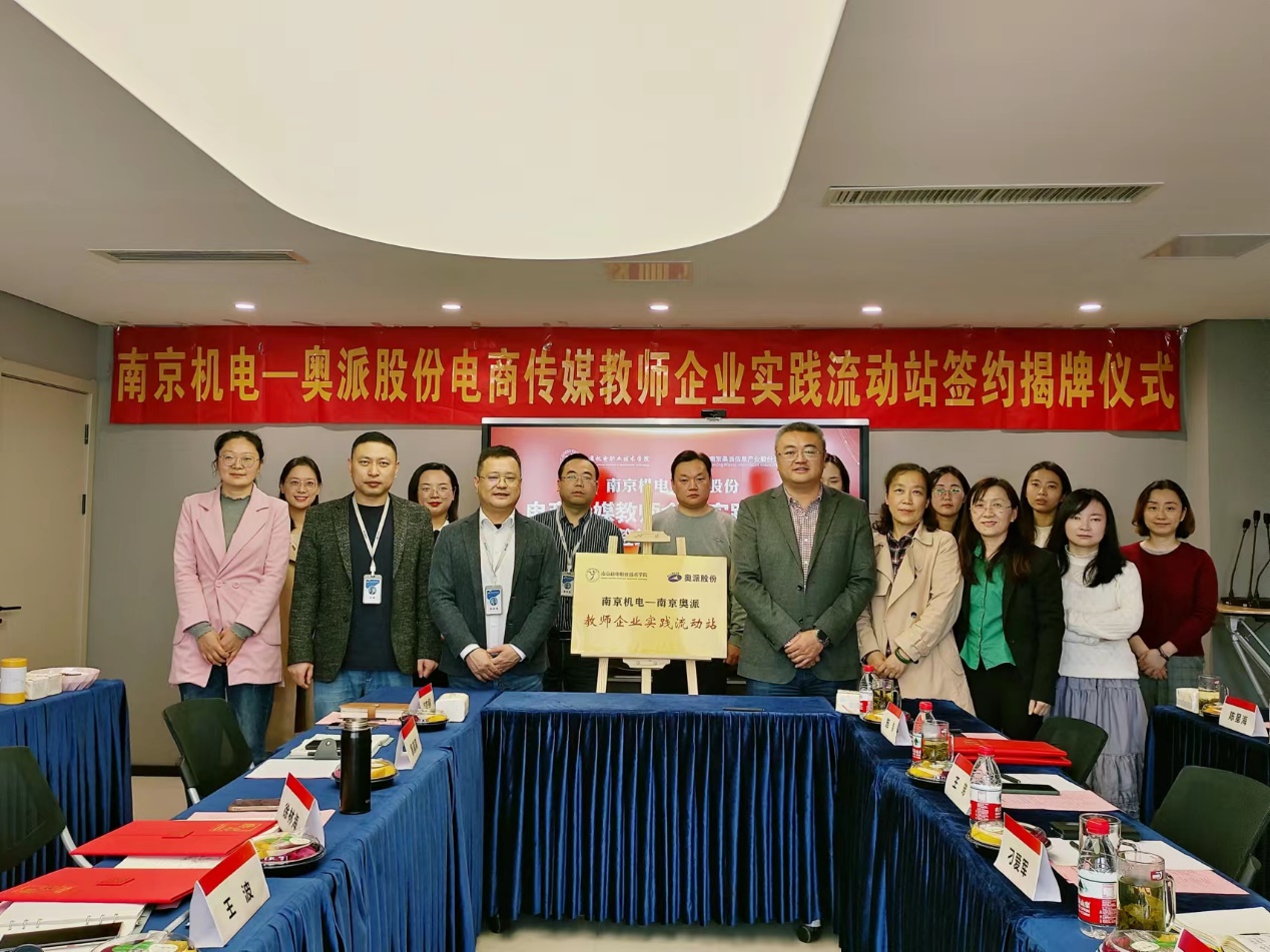 11月10日上午我校党委委员、副院长刁爱军,科研及校企合作处处长李木香、信息工程系主任王玮、信息工程系副主任刘娴及进站教师一行赴南京奥派信息产业股份公司与董事长徐林海、常务副总裁董清其、产品中心总监王波、产品中心副总监刘飒等企业领导共同见证“南京机电-奥派股份电商传媒教师企业实践流动站”正式成立,为着力打造高水平"双师型"队伍、提升我校教师专业实践能力提供了有力的平台保障。