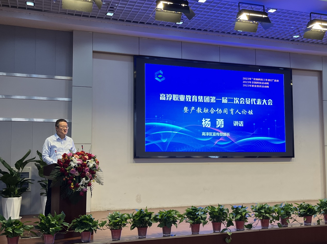 高淳区委宣传部部长杨勇强调,高淳职业教育要全面贯彻党的二十大报告精神,进一步推动资源整合融合,广泛开展校企合作、专业建设、学生实训等一系列教学创新改革,促进教育链、人才链、产业链、创新链的有机衔接;引领现代人才发展,推动专业跟着产业走,职业跟着需求走,人才跟着发展走。
