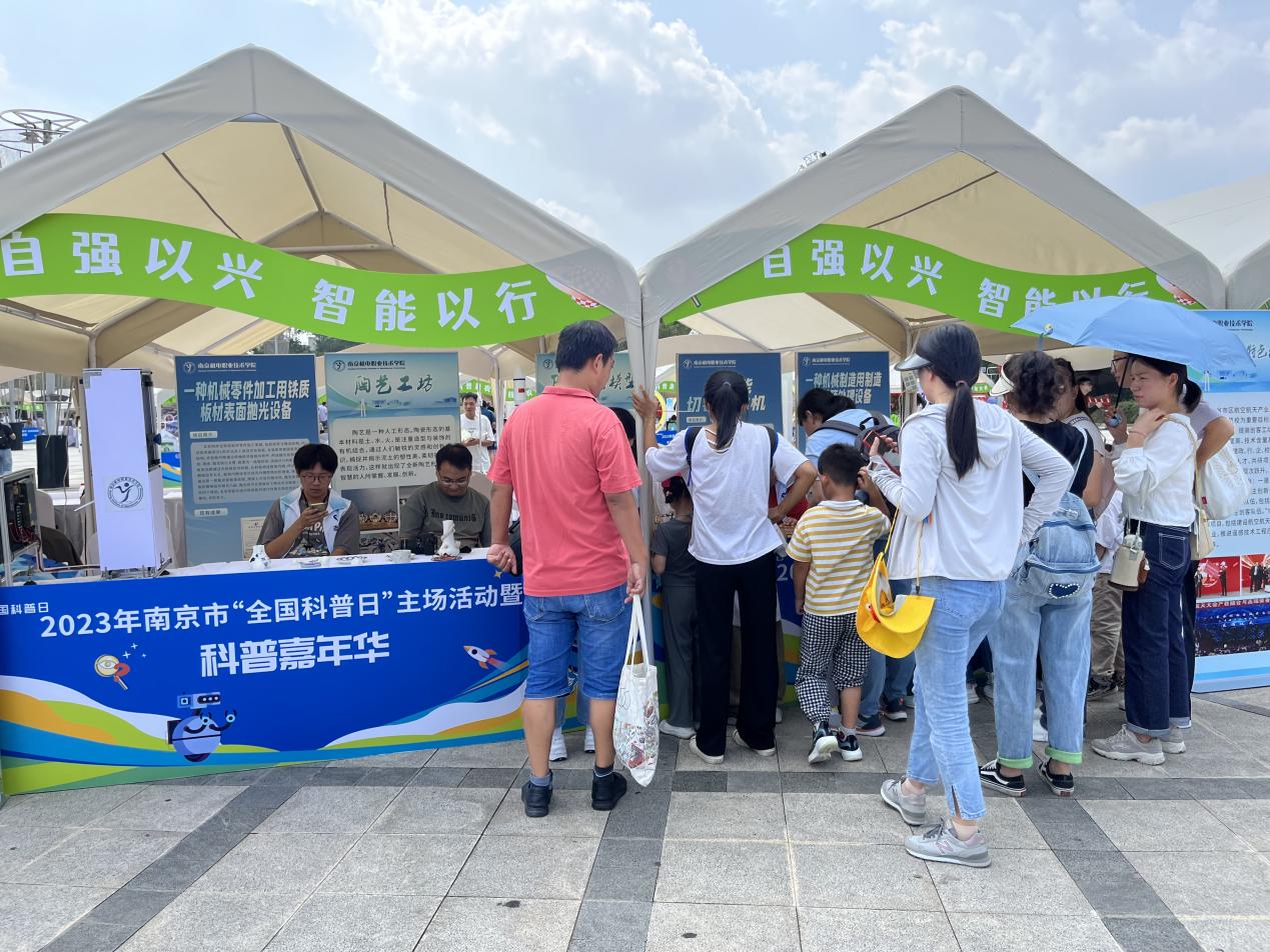 9月17日,2023年南京市“全国科普日”主场活动暨科普嘉年华在南京科技馆举行,学校科研及校企合作处处长李木香出席开幕式,学校科协作为参展单位应邀参加科普嘉年华活动。学校科技志愿服务支队为前来参观的市民精彩展示我校师生的创新成果,并获评“2022-2023年度南京市优秀科技志愿服务组织”称号。