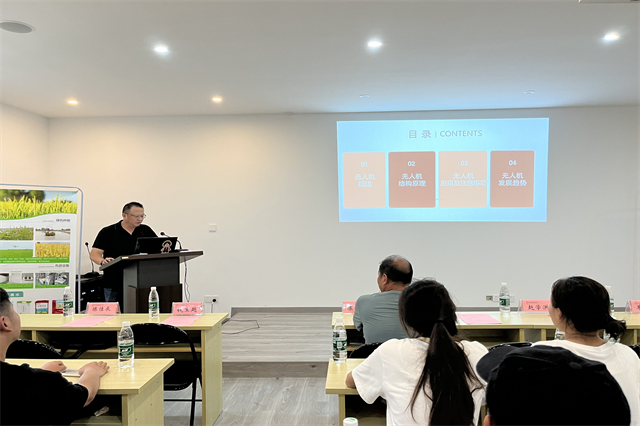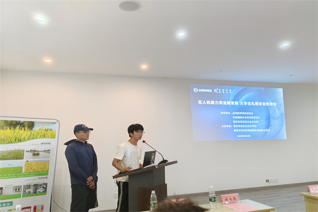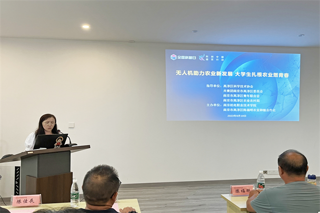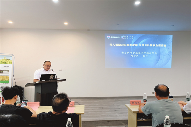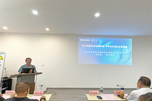 专家报告中,南京市农业装备推广中心副主任钱生越作了《无人机技术及操作安全》报告,从理论上讲解了无人机技术的广泛应用;南京市高淳区农业农村局农业装备科科长陈佳辰作了《全程全面 智能绿色 农业机械化助力乡村振兴》报告,介绍了农业机械化的发展、现状与展望,还分享了大学生创业典型案例。