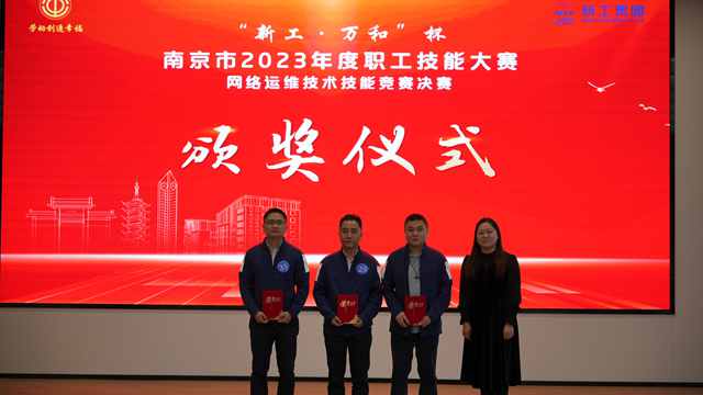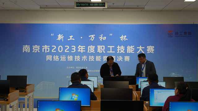 为深入学习贯彻党的二十大精神,全面贯彻落实习近平总书记对技能人才工作重要指示精神和致首届大国工匠创新交流大会贺信精神,由南京市总工会、南京市人力资源和社会保障局、共青团南京市委主办,南京新工投资集团有限责任公司工会、南京机电产业(集团)有限公司和我校共同承办,华为技术有限公司、江苏万和系统工程有限公司协办的2023年度南京市职工职业(行业)技能大赛“新工•万和”杯网络运维技术竞赛于10月21日在我校如期举行。
