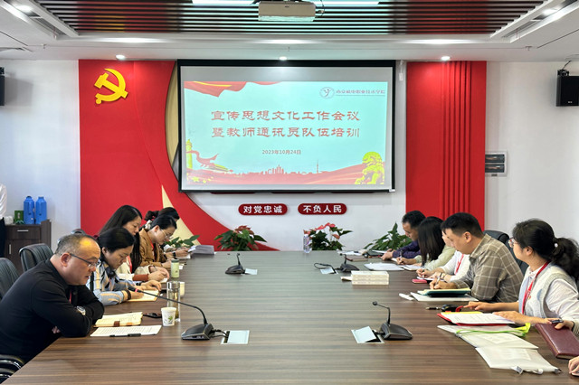 10月24日下午,学校党委宣传部在育德楼召开宣传思想文化工作暨教师通讯员专题培训会。学校党委副书记、副校长赵学洪出席会议,各支部书记、宣传委员及各部门教师通讯员参会,会议由党委宣传部副部长张玥主持。