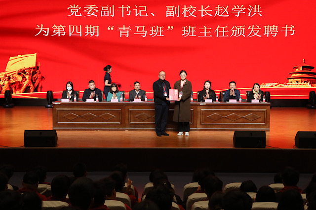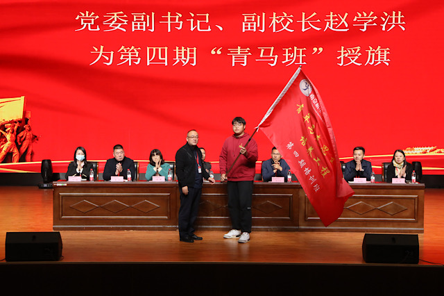 青年是标志时代的最灵敏的晴雨表,时代的责任赋予青年,时代的光荣属于青年。实现中华民族伟大复兴的中国梦,需要一代又一代有志青年接续奋斗。赵学洪为第四期“青马班”授班旗并为班主任周笛颁发聘书。