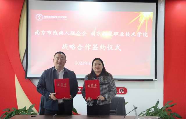11月14日,我校与南京市残疾人联合会签署战略合作协议,充分发挥各自资源优势,全方位开展多层次宽领域合作,推进特殊教育事业发展,实现残疾人高质量就业。