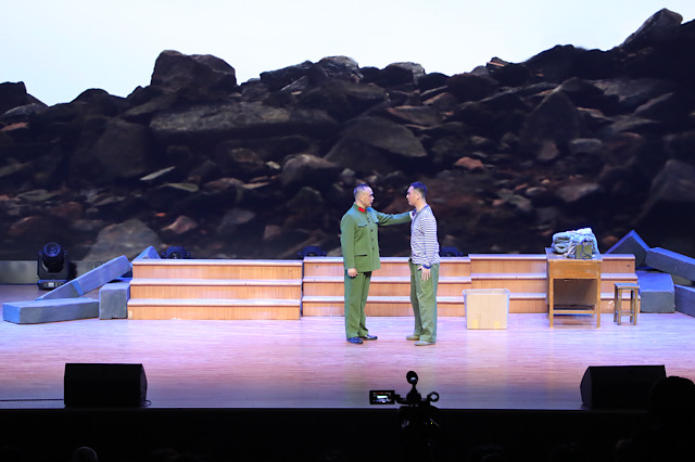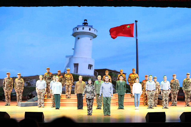 演出现场,二十几名同学们踊跃上台,学习锡剧基本动作,零距离感受传统戏曲的独特韵味与魅力,也让整个舞台充满了生气勃勃的氛围和愉悦的气氛。紧接着,演员们用精湛的技艺和深情的演绎,将王继才夫妇在开山岛的生活和坚守的情景生动地呈现在观众面前。他们高亢激昂的唱腔、细腻传神的表演,让观众仿佛置身于那个偏远的小岛上,感受到了王继才夫妇为了国家的安全和人民的幸福,舍小家顾大家的家国情怀。