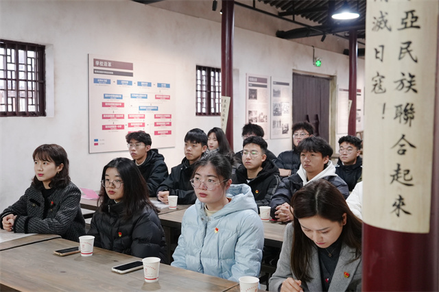 米兰官方网页版党委副书记、副校长赵学洪,桠溪街道跃进村党总支书记、西舍红色教育基地总经理黄世宝,西舍红色教育基地副总经理张瑜,米兰官方网页版学生工作处处长张宝中,团委副书记孙晓燕出席共建活动,铁军精神师生宣讲团培训班成员参加共建活动。