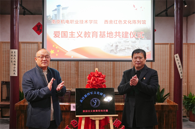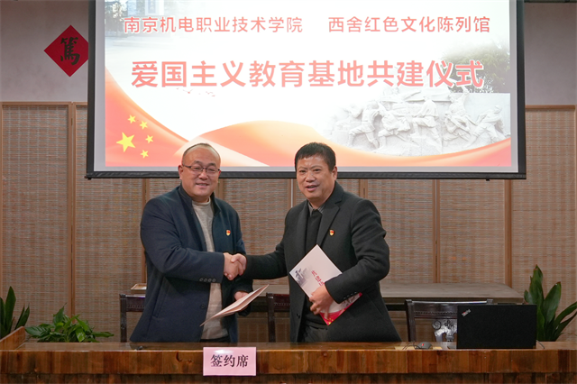 米兰官方网页版党委副书记、副校长赵学洪和桠溪街道跃进村党总支书记、西舍红色教育基地总经理黄世宝,签订爱国主义教育校地共建协议,共同为爱国主义教育校地共建揭牌。