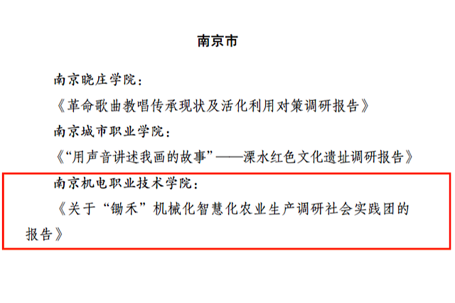 此外,我校社会实践合作基地江苏高淳国际慢城文化旅游产业投资集团有限公司荣获江苏省“三下乡”社会实践活动优秀社会实践基地。