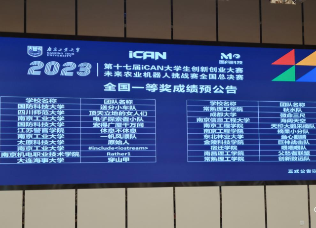 2023年12月22日,由中国信息协会举办的2023年iCAN大学生创新创业大赛未来农业机器人挑战赛总决赛在南京工业大学圆满落幕。我校蓝岛创客空间王国珍、杨阳老师指导的电子信息工程技术专业的双创班洪剑、李子研团队荣获国赛一等奖。