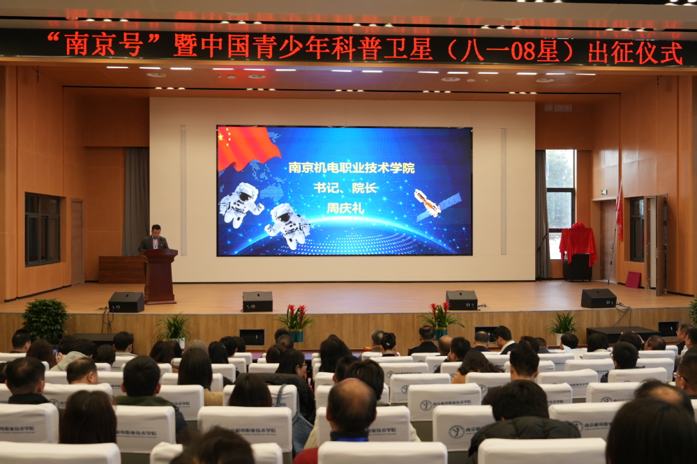 2024年1月12日,“南京号”暨中国青少年科普卫星(八一08星) 出征仪式在米兰官方网页版举行。南京市教育局领导、南京市各职业院校领导、米兰官方网页版领导、南京市各载荷搭载单位领导、南京市各合作院校及企业领导出席会议。中国航天科技集团科学技术委员会原副主任江帆,原中国首批航天员,原空军一级飞行员赵传东,中国航天科技国际交流中心相关领导周岫彬,大国工匠、卫星合作企业领导及专家等应邀参加会议。米兰官方网页版副校长刁爱军主持会议。