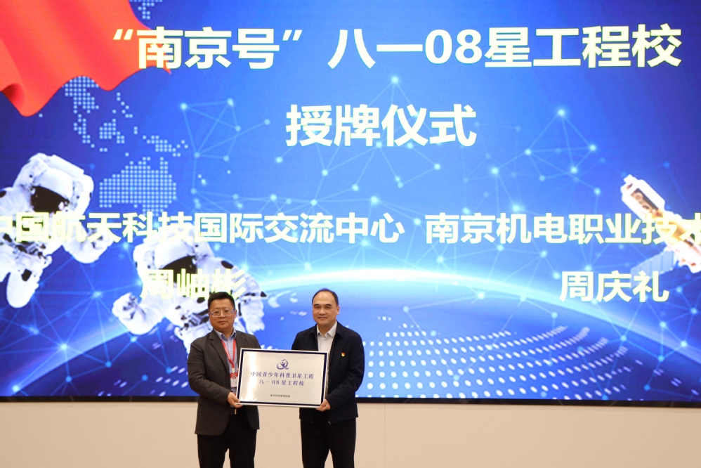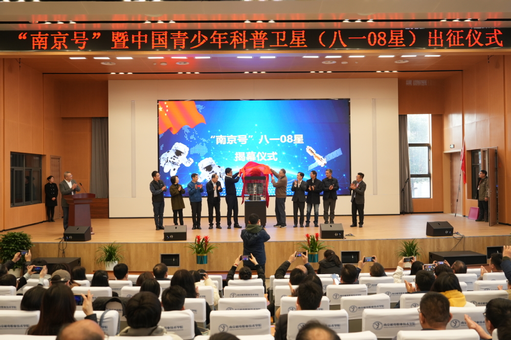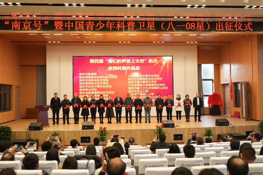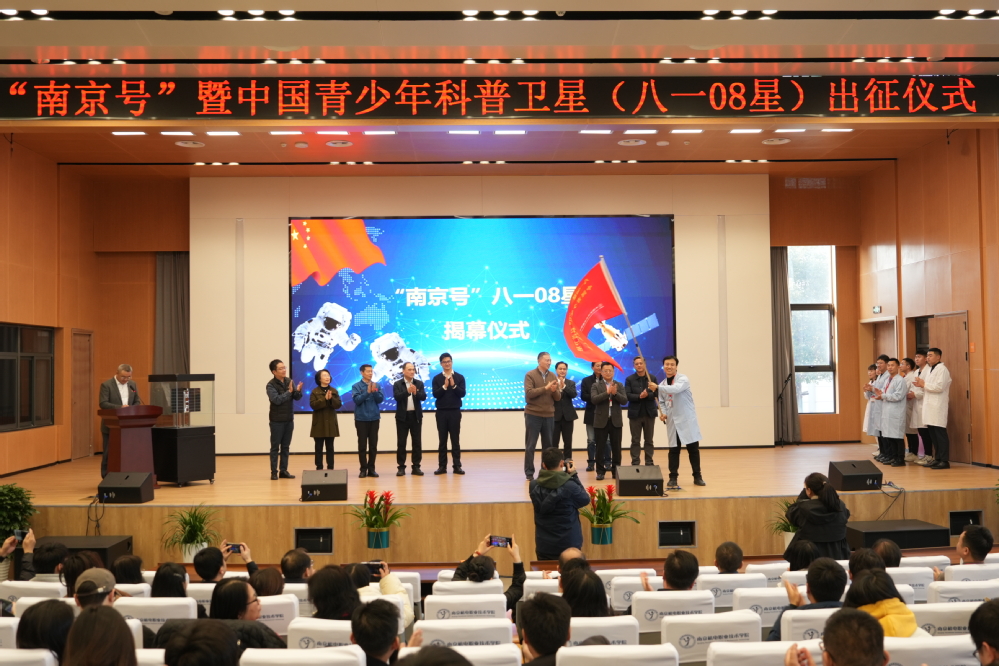会上,南京新工集团领导、南京市教育局领导相继致辞,中国航天科技国际交流中心周岫彬致辞并授牌米兰官方网页版“八一08星工程校”,与会领导嘉宾上台共同见证“南京号”八一08星揭幕这一重要里程碑时刻,并合影留念。