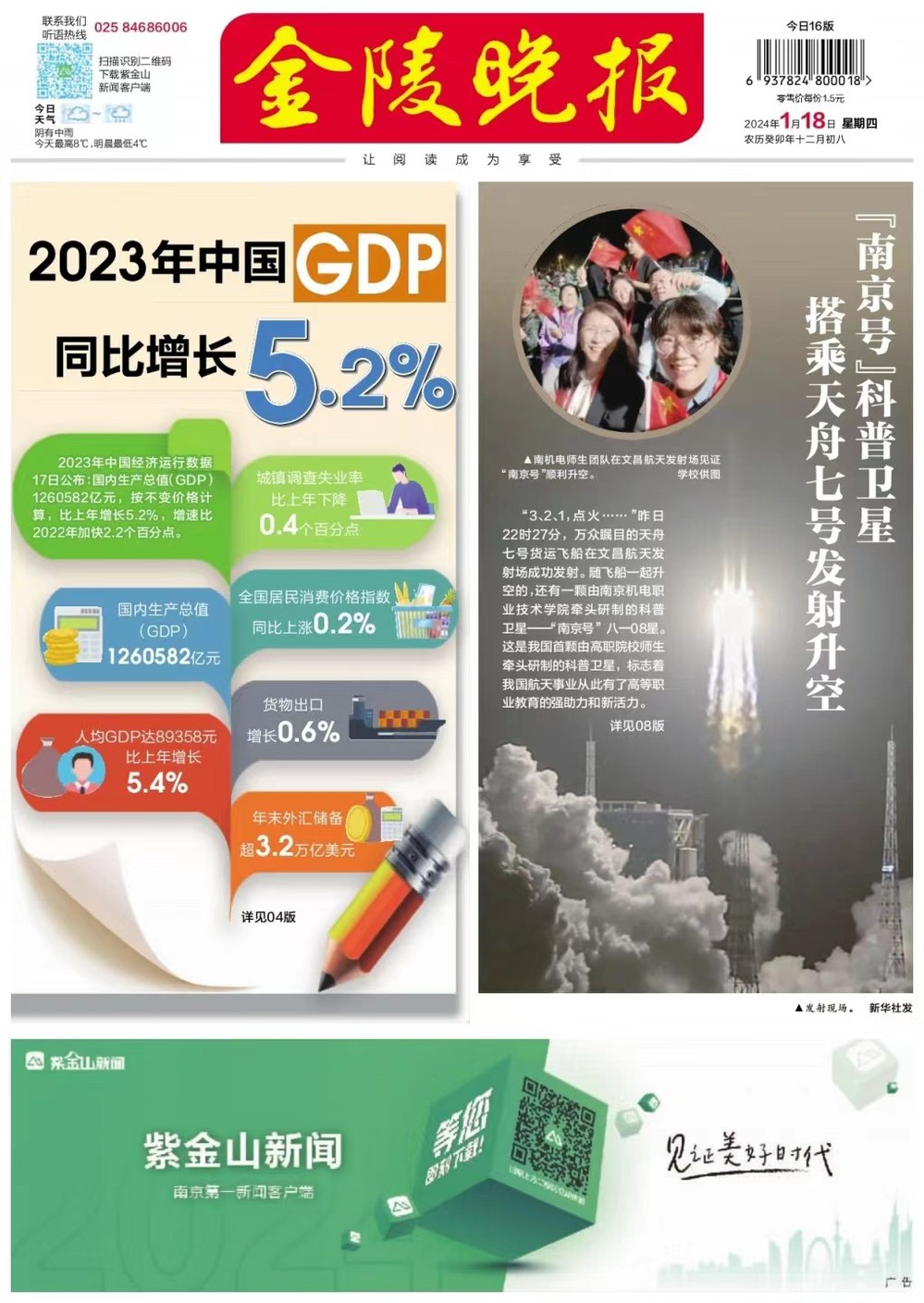 除了国家级媒体的广泛报道外,市级媒体南京日报、金陵晚报也针对南京号卫星发射进行系列深度报道,全文如下: